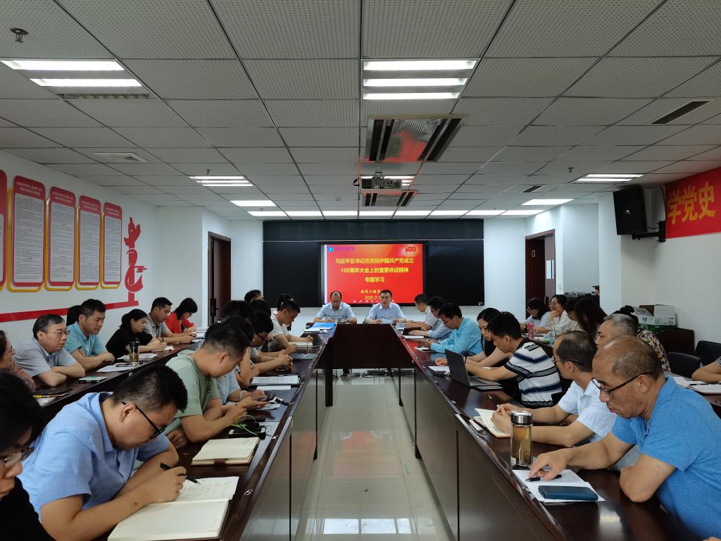 7月7日下午,万象城awc官网登录入口召开教工政治学习会,专题学习习近平总书记在庆祝中国共产党成立100周年大会上的重要讲话精神,会议由学院党委书记徐志国主持,学院全体教职工参加。