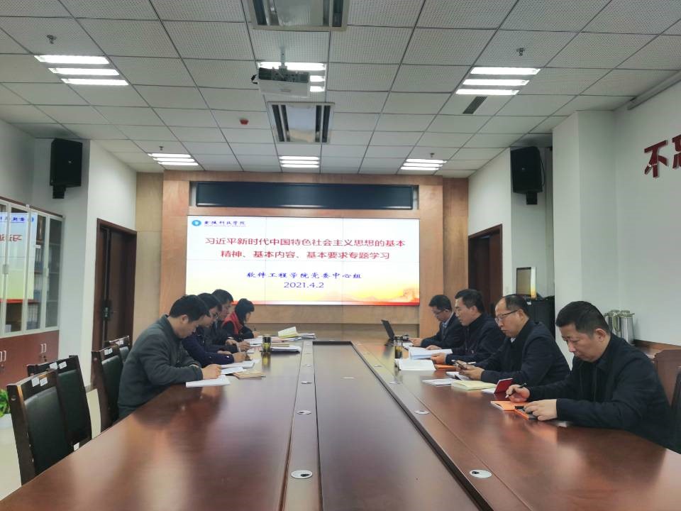 4月2日上午,万象城awc官网登录入口在科技楼325组织开展了中心组学习,专题学习了习近平新时代中国特色社会主义思想的基本精神、基本内容、基本要求,会议由学院党委书记徐志国主持,全体中心组成员参与了学习。