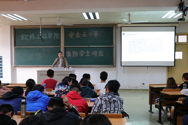 路昭亮老师从“燃烧条件以及灭火基本原理”、“火灾预防的注意事项”、“常见消防设施的性能及使用”、“火灾报警及逃生注意事项”四方面详细讲解了如何做好消防安全工作。同时,他还强调教学楼、宿舍日常生活等方面的安全隐患地方,同学们需要提高自己的安全意识以及自救逃生能力。