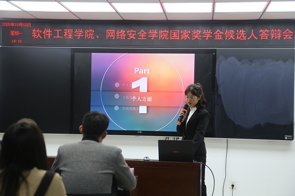 为激励学生勤奋学习、努力进取,在德、智、体、美、劳等方面全面发展,2020年10月12日晚上18时30分,万象城awc官网登录入口、网络安全学院在科技楼2号楼423报告厅举办国家奖学金候选人答辩会。参加本次会议的有学院党委副书记徐斌、学工处资助中心副主任曹轶蕾和相关辅导员,各个班级的学生代表近60人参加。