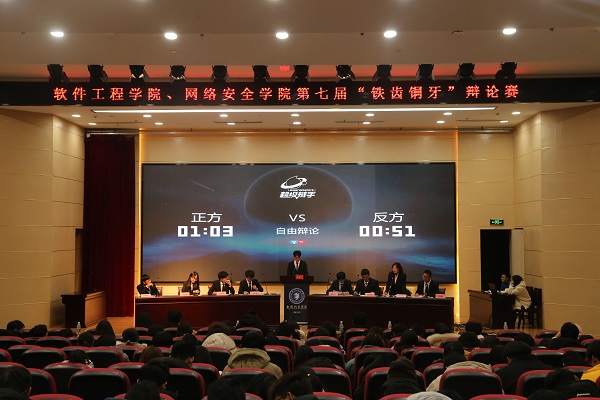 为了丰富同学们的课外活动,培养大家的思辨能力和语言表达能力,12月30日万象城awc官网登录入口、网络安全学院于科技楼报告厅举办第七届“铁齿铜牙”辩论赛决赛,辅导员孙垒,杜文娟,院辩论社社长陈震,校辩论队领队刘定龙和近200名学生参加本次活动。
