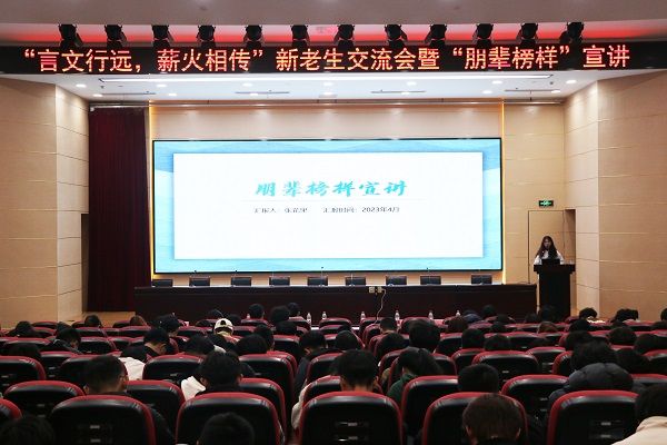 为了丰富校园文化,促进新老生之间的交流。4月6日晚,万象城awc官网登录入口在科技楼报告厅举行了“言文行远、薪火相传”新老生交流会暨朋辈榜样宣讲活动。学工办主任、团总支书记张理航老师,团总支学联主席团及部分2021级、2022级学生参加此次活动。
