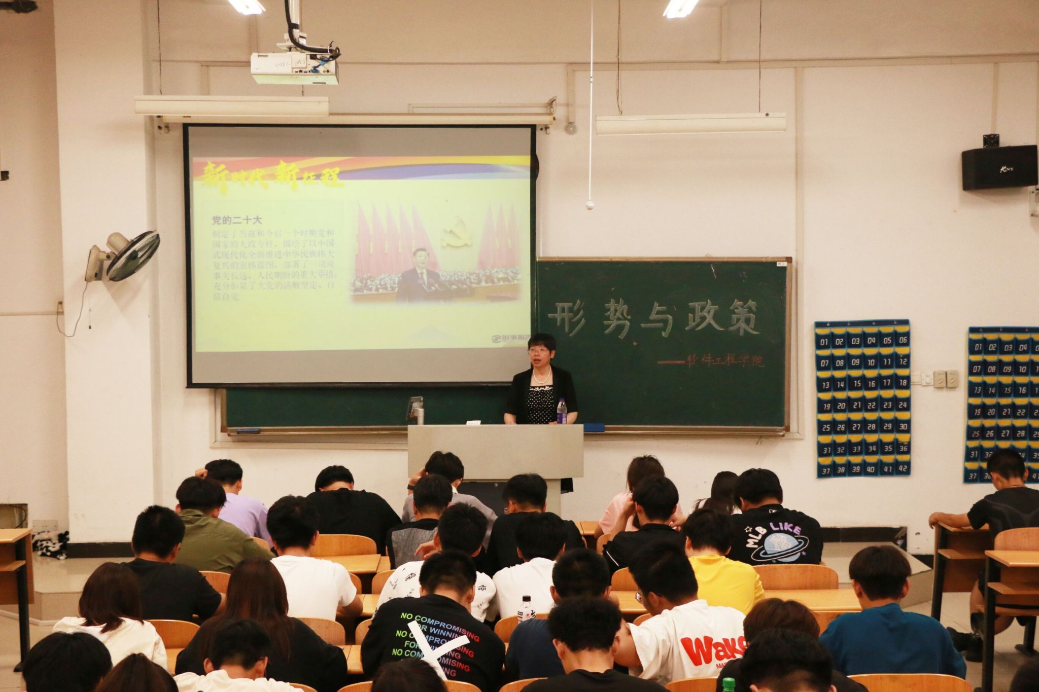 5月31日晚上,万象城awc官网登录入口在教学楼3106教室召开以“立志复兴伟业,踔厉奋发前行”为题的形势与政策讲座,2021级、2022级部分学生参加了讲座。