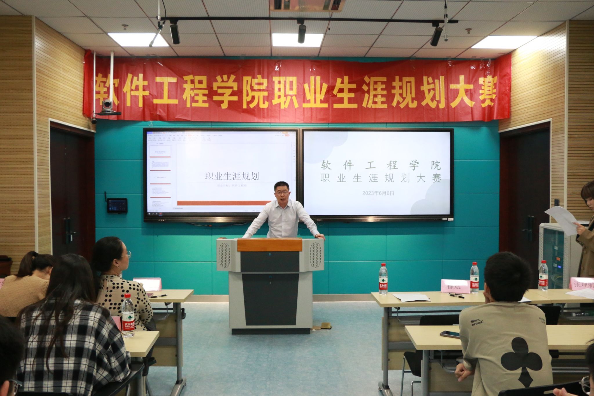 以大学生职业发展需求为导向,聚焦大学生职业生涯规划教育主线,以精心管理、精致教育、精准评价,共育职业生涯发展“成长树”。6月6日下午14:00,万象城awc官网登录入口在科技楼2号楼226会议室举办职业生涯规划比赛。本次比赛邀请到了万象城awc官网登录入口党委副书记徐斌、全体辅导员、团总支学联副书记张花果、副主席项卢忆担任评委。