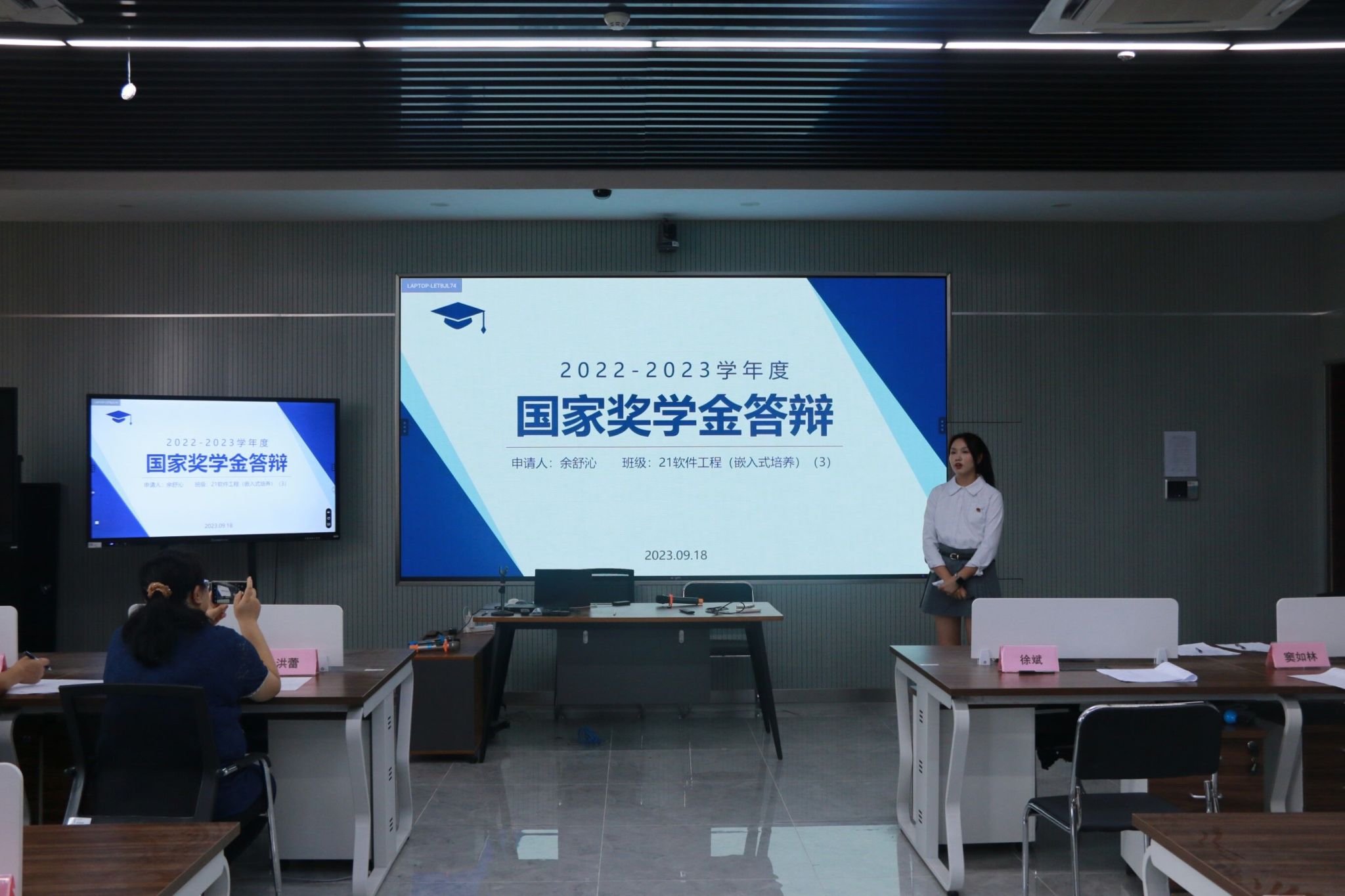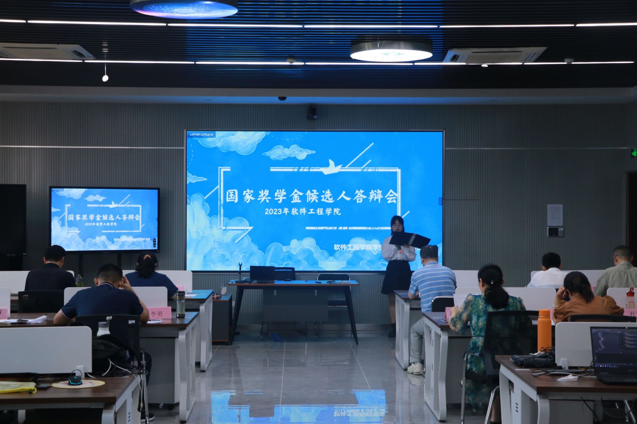 为了展示学生的学习能力和综合素质,提升育人成效,2023年09月19日中午,万象城awc官网登录入口在科技楼2号楼311室举办了国家奖学金候选人答辩会。学院党委副书记徐斌、各系主任、各候选人班主任、全体辅导员出席此次答辩会并担任评委。