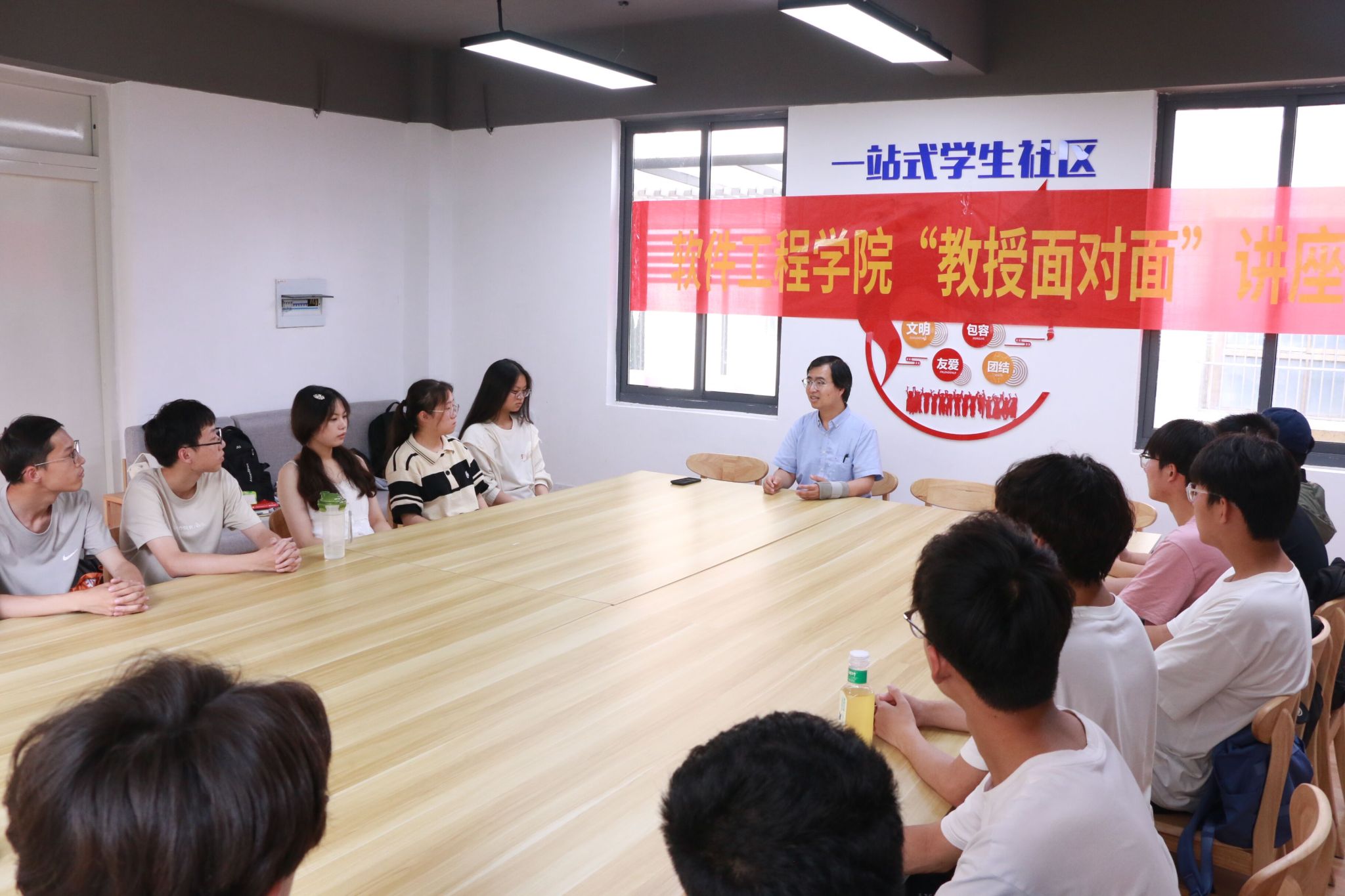 6月13日下午,万象城awc官网登录入口于江宁校区学生宿舍北02“一站式”学生社区举办了“教授面对面”讲座。本次活动邀请软件学院副院长赵海峰教授与同学们分享交流,部分学生代表参加了此次活动。