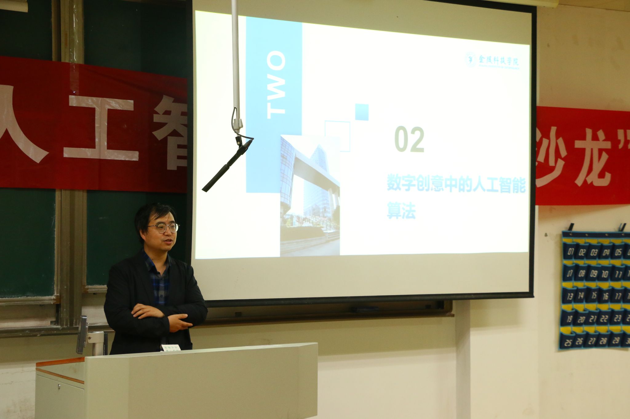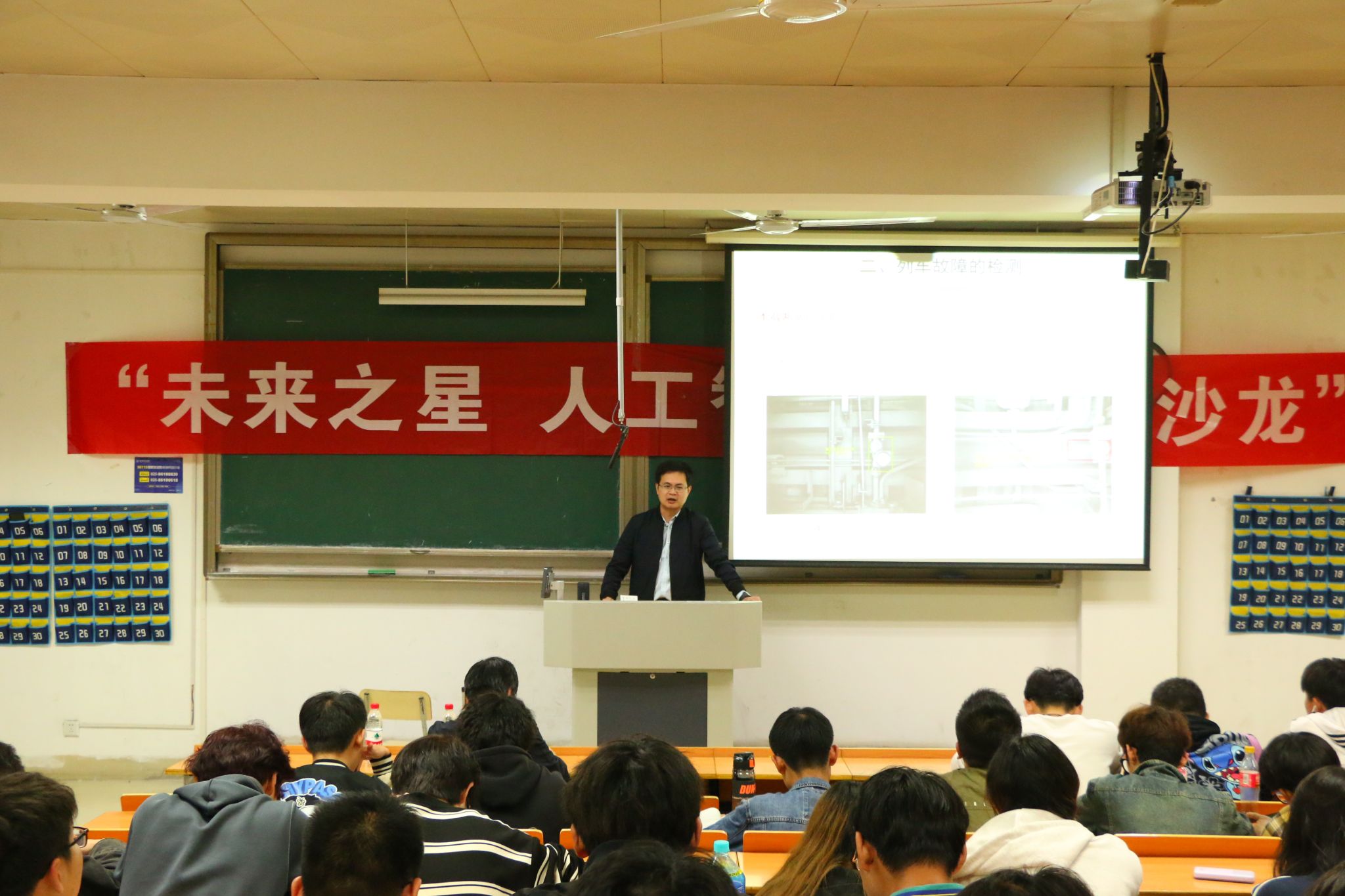 首先,赵海峰副教授主要介绍了人工智能在数字创意中的应用,通过举出人工智能算法的实例,图文并茂地展现出在数字创意中人工智能的鲜明特点,在座同学更清晰直观地了解了人工智能的应用推进过程以及未来发展前景。接着,朱周老师主要以轨道交通应用场景为例,阐释前深度学习时代的计算机视觉;朱老师由青蛙的成长历程类比引入,从轨道的缺陷检测、列车故障的检测、乘客的检测、基于红外热图像的道岔方向识别等方面由表及里、由浅入深地展开详细解说,展示出人工智能技术在轨道交通领域的创新应用。最后,同学通过提问的方式更加深入探讨了解了人工智能的未来应用,现场互动氛围十分热烈。