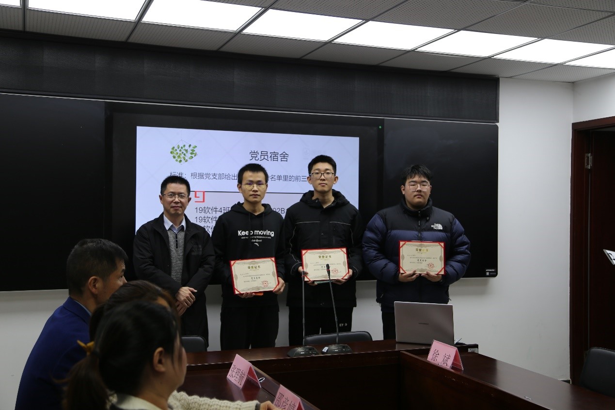 11月22日,万象城awc官网登录入口在科技楼2-423会议室举行了学生宿舍安全及优秀宿舍评比颁奖典礼。院党委副书记徐斌、全体辅导员及部分获奖代表参加了本次颁奖典礼,学工办主任张理航主持。