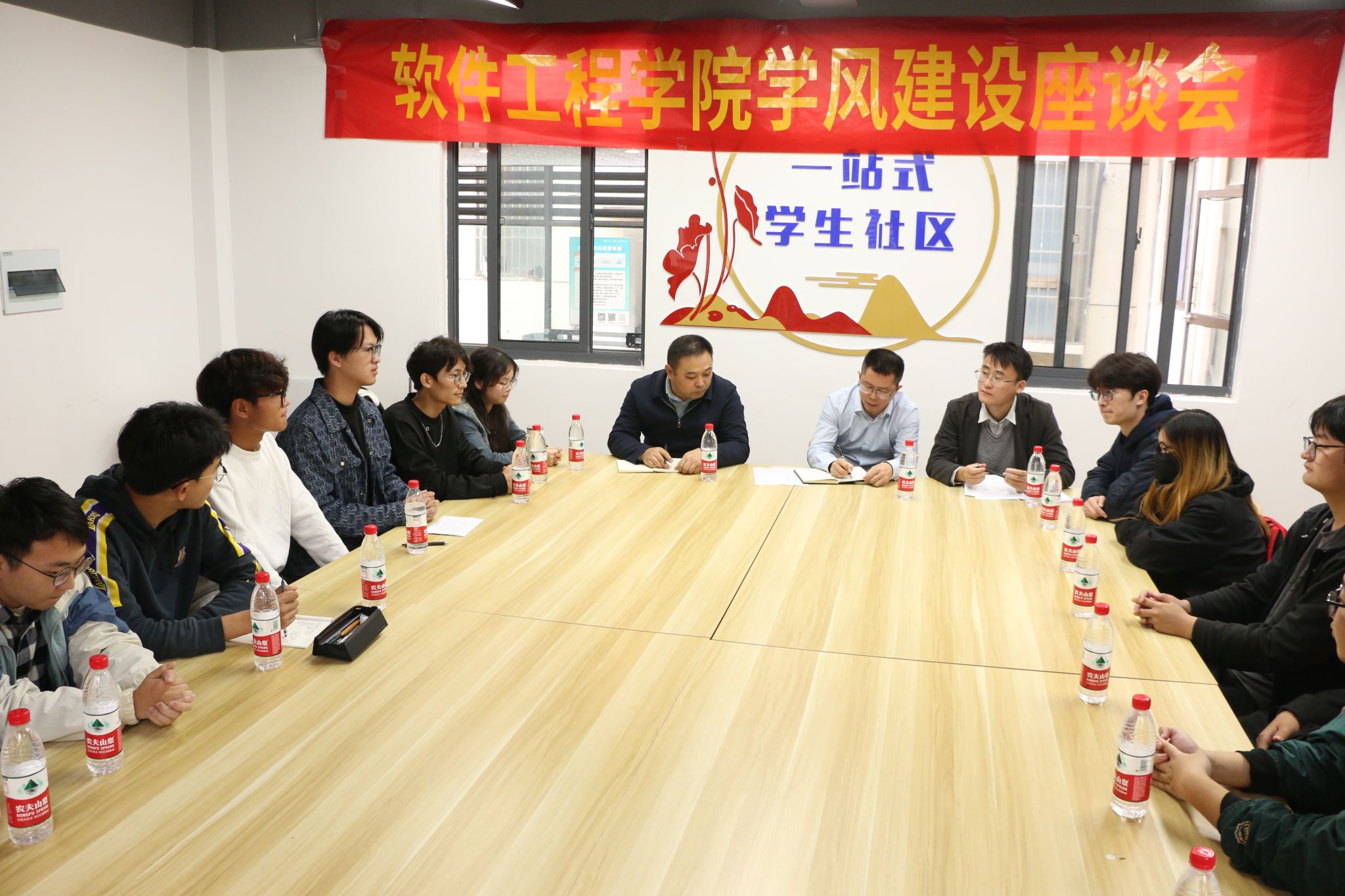 为推动优良学风建设,迎接本科教育教学审核评估工作,万象城awc官网登录入口于10月31日在北01栋的一站式学生服务中心召开学风建设座谈会。万象城awc官网登录入口党委副书记徐斌、副院长徐永华、辅导员王天宇以及各班学习委员参加本次座谈会。