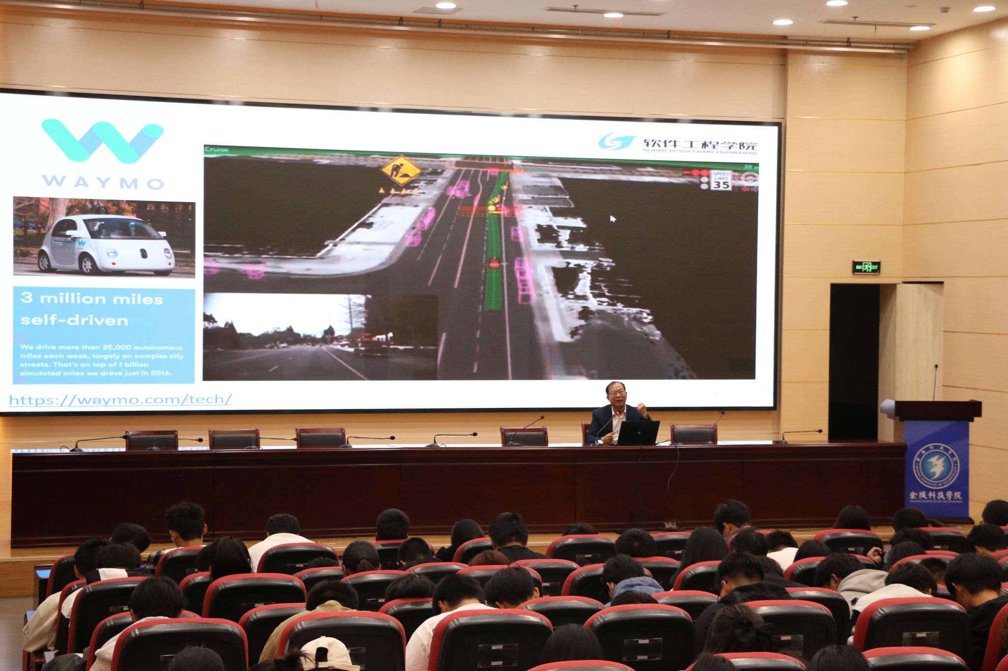 曾岳首先以AlphaGo为对象,介绍了人工智能的深度学习能力,展示了人工智能广阔的发展前景,人工智能目前在王者荣耀中各个方面碾压世界顶级选手。其次,他讲解了计算机的发展背景,图灵机模型是现代计算机的逻辑工作方式的基础,推动了现代人工智能的发展,介绍了在探索开普勒-90星系时用到了卷积网络神经进行推算,以及从近代到现代计算机的发展历程,展示了自己的科研成果(磁导航、二维码导航和激光导航机器人在不同智能工厂的应用场景),掌握技术的主动权和创业市场前瞻性,启发同学们用知识专利进行创业。最后,他强调人工智能的发展前景广大,号召同学们应认真学习专业课程,提升自己的计算机思维,发展编写代码的能力,促进学生的开发代码的创新能力。
