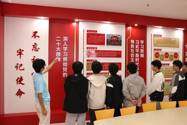 宣讲团成员们分批次带领新生们参观了展厅。他们详细介绍了学院雨花英烈精神展厅的布局和展品内容,通过生动的语言和丰富的历史背景知识,将烈士们的英勇事迹和革命精神娓娓道来。新生们听得入神,不时发出感叹和敬意。在宣讲过程中,他们不仅讲解了历史背景和烈士事迹,还引导新生们思考革命精神在当代社会的价值和意义。他们鼓励新生们要铭记历史,珍惜来之不易的幸福生活,努力学习专业知识,为实现中华民族伟大复兴的中国梦贡献自己的力量。在介绍过程中,五位宣讲员特别强调了学院在思政教育方面的特色和亮点。他们介绍了学院如何结合专业特点,将红色文化融入日常教学中,通过举办各类思政特色活动,如红文研学、宣讲、实践等,引导学生树立正确的世界观、人生观和价值观。同时,他们还分享了学院在推进文化自信自强、弘扬中国精神方面的积极探索和实践成果。