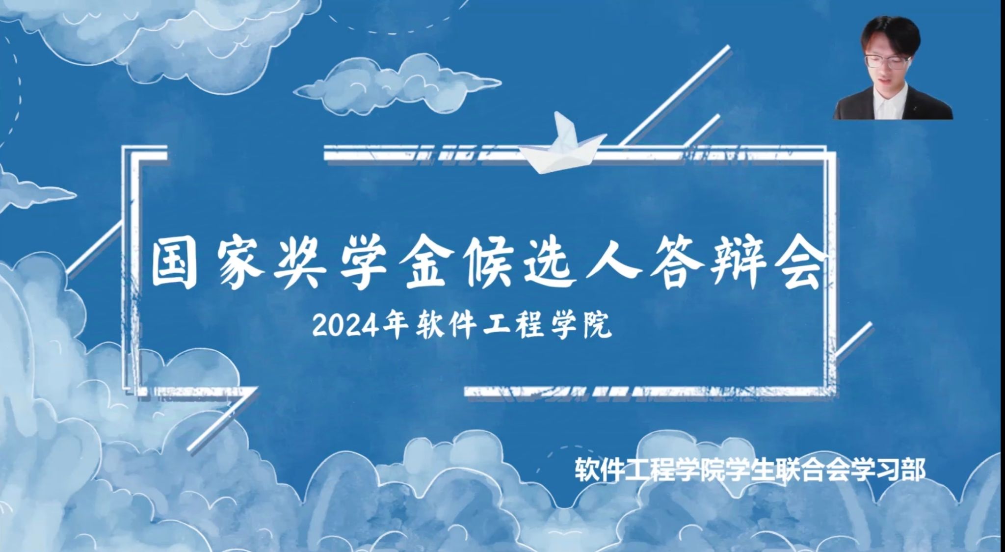 万象城awc官网登录入口于2024年9月18日19:30在线上成功举行了国家奖学金候选人答辩会。此次会议旨在选拔出最优秀的国家奖学金候选人,展示万象城awc官网登录入口学子的卓越风采和学术成就。出席的领导及嘉宾包括万象城awc官网登录入口党委副书记徐斌书记、系主任、部分班主任代表以及全体辅导员。此外,还有五位经过初选脱颖而出的国家奖学金候选人参加了此次答辩。